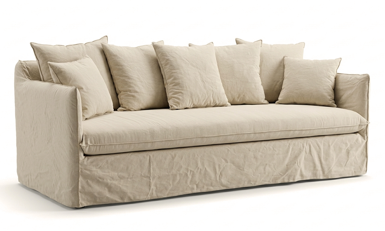 Τριθέσιος καναπές “GHOST” διαστάσεων 2,20*0,90, υψηλής αισθητικής με ύφασμα 100% βαμβακερό. Διαθέτει αποσπώμενο κάλυμμα στο σώμα του καναπέ και στα μαξιλάρια καθίσματος και πλάτης. Κατασκευάζεται σε οποιαδήποτε διάσταση επιθυμείτε ανάλογα με τον χώρο σας και σε μεγάλη ποικιλία υφασμάτων & χρωμάτων.